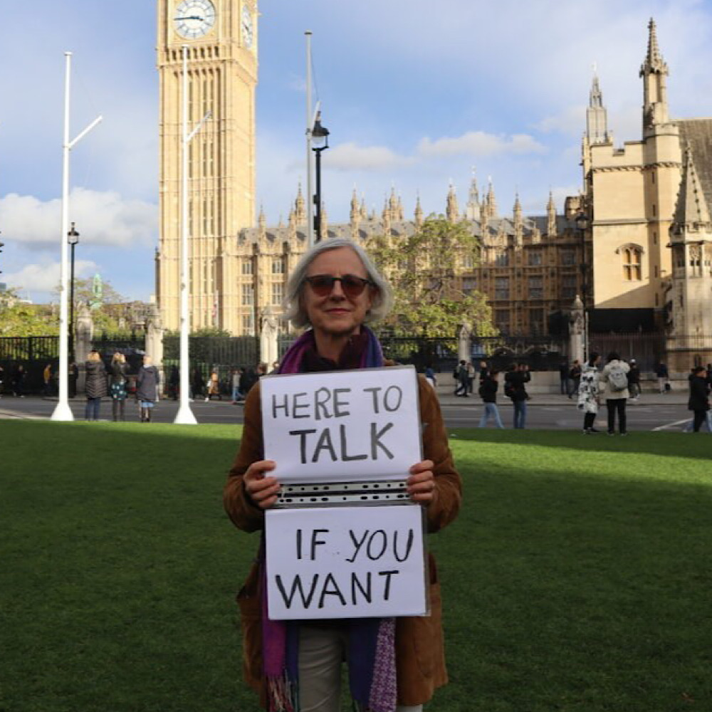 “It’s mad that a retiree is facing trial for inviting people to have a harmless chat. No one should be turned into a criminal just for peacefully offering to talk to people in a public space.